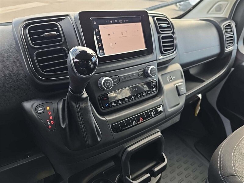 Powered by a Pentastar 3.6L V6 (276 hp / 250 lb-ft) and paired with a 9-Speed Shiftable Automatic, the ProMaster delivers strong acceleration, smooth operation, and excellent drivability in tight city routes or job sites. Its front-wheel drive layout provides confident handling and maximum traction when fully loaded.